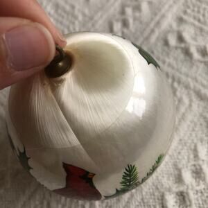 Keywords: vintage, 1970s, 1980s, satin thread ball, satin ornament, styrofoam core, cardinal bird, holly, pinecones, winter, Christmas tree, holiday decor, retro, lightweight