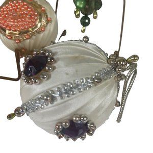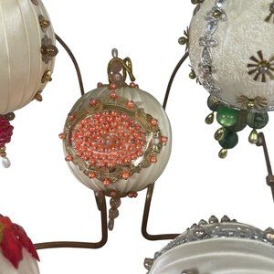 Vintage Satin and Beaded Handmade Ornaments Set of 5
