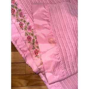 Vintage Satin Lined Floral Embroidered Pink Blanket 75 x 87