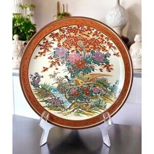Vintage Satsuma Asian Japanese Bird And Flower Plate w/Hanging Hardware 12 1/4”