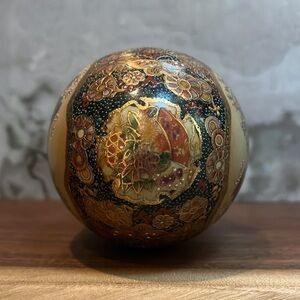 This is a beautiful 6” Vintage Satsuma Large Hand Painted Gold Porcelain Ceramic Egg. 4” Wide. Gorgeous. No issues at all