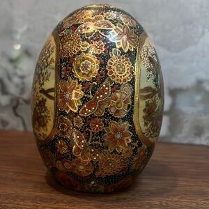 Vintage Satsuma Large Hand Painted Gold Porcelain Ceramic Egg
