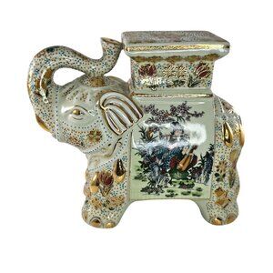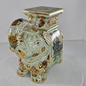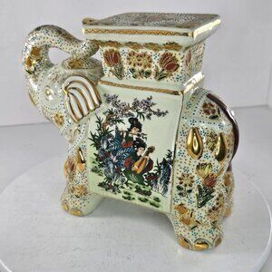 Vintage Satsuma Porcelain Elephant Plant Stand With Asian Design