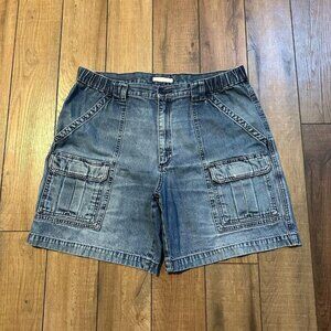 Vintage Savane Denim Cargo Jean Shorts Jorts Men's size 36 Utility Hike Fisherman