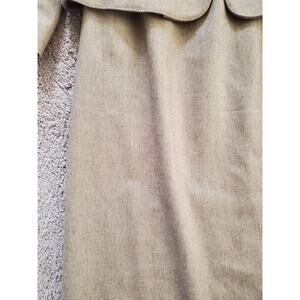Style: 100% pure wool. Blazer and skirt are fully lined. Faux pockets on the blazer. Single button closure. Skirt comes with a thin belt and zip/ button closure in back. 8 inch slit in back. Pockets in the skirt on the sides.