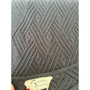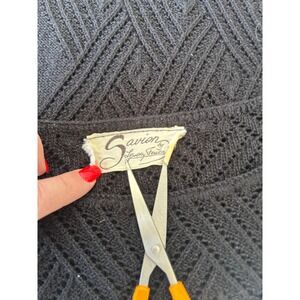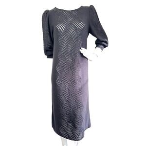 Vintage Savion Open Knit Midi Dress Sheer Center Puff Shoulder Black Size Large