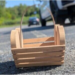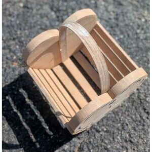 Vintage Sawmill Critters Wood Hand Painted Heart Hand Basket Made In USA