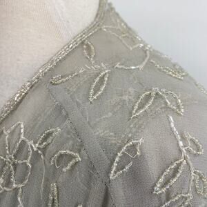 Vintage Scala Beaded Gown Matching Set Semi Sheer Duster Silver Plus Womens 1X
