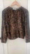 Features textured fabric and intricate beading. Subtle animal pattern in shades of brown. Slight gather detail at shoulder. Hook and eye front closures so could be worn as a top or jacket.