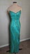 Dazzle in this Scala gown. Turquoise sequins with gold accents. Ideal for prom or special events. waist 13" across , could be up to 14" with alterations removed