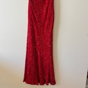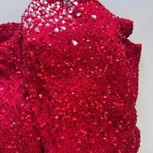 Vintage Scala Prom Dress Maxi Gown Red Full Sequin Beaded Mermaid 90s Y2K Sz 2