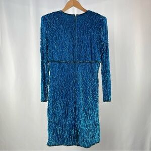 Vintage Scala Sequins Long Sleeve Mini Dress in Blue Size Small