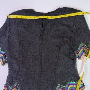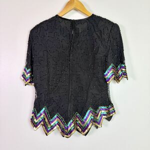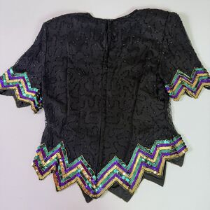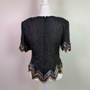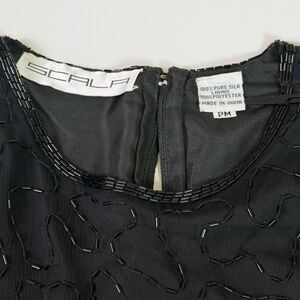 Vintage Scala Silk Beaded Sequin Top Petite Medium Art Deco Glam Flawed Zipper