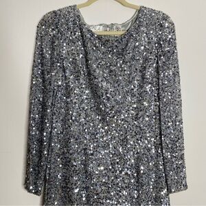 Vintage Scala Silver Sequin Silk Maxi Gown 6