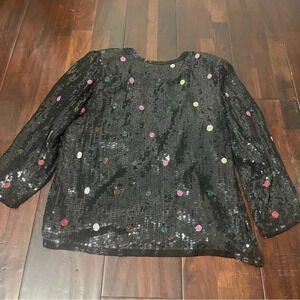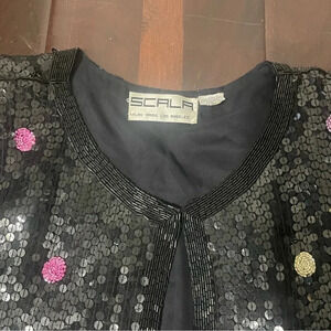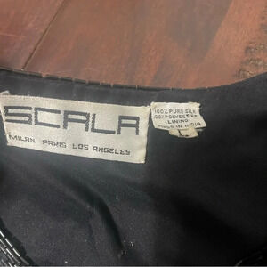 Vintage Scale Milan Paris Silk Blouse Top Black Polka Dot Women’s Large Beaded