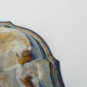 Large Scalloped round gothic midcentury dish or bowl with stunning patina, sold as is but could be cleaned to shine.