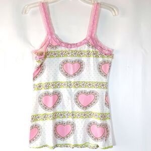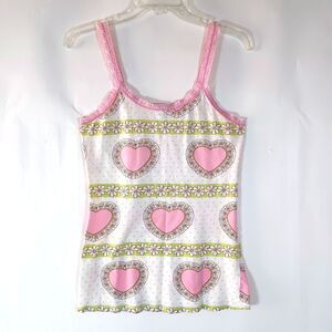 Vintage Scanty Tank Top Y2k 90's Large Lace Heart Daisy Twee Girlcore Festival