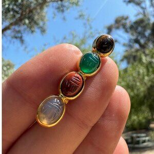 Vintage Scarab Beetle Brooch Pin Egyptian Revival Bar Pin