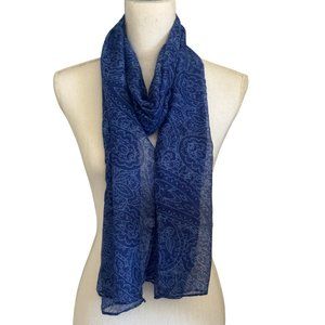 Vintage Scarf Blue Paisley Print Shawl Wrap Rectangle 70x16in The Humane Society