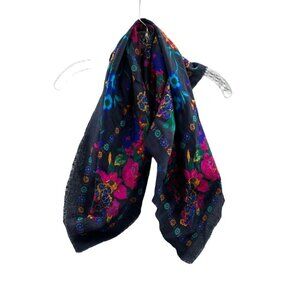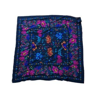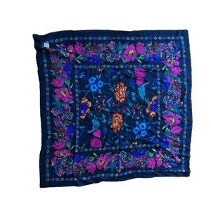 Vintage Scarf Challis by Berkshire Blue Fuchsia Floral Acrylic Made in Japan