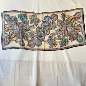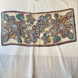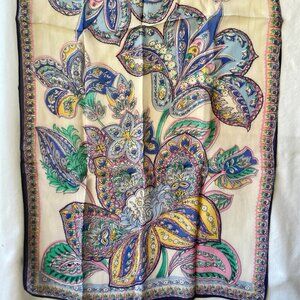 Vintage Scarf Wrap Acetate Chiffon 17" X 38" Mandala Lotus Flower Paisley Blue