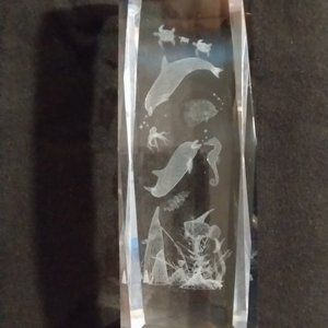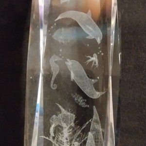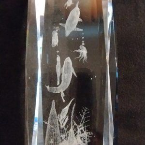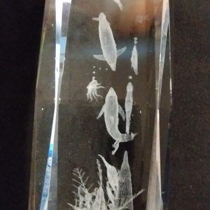 Vintage Scenic Ocean Underwater Scene Art In Crystal (Glass). Measures 6X2 Inches, 2 1/2 Pounds. Can't Find These On Internet. Vintage Glass Water Art. New Vintage Item.