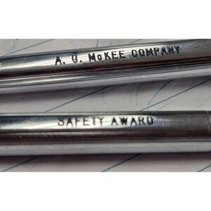 Collectible pen and pencil gift set. A.G. McKee Safety Award