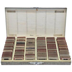 Step into mid-century Europe with this remarkable collection of over 100 original 35mm color travel slides, neatly stored in a vintage Scherer (Skokie, Illinois) slide storage case.