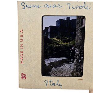 These authentic 1950s slides capture a personal journey through Italy and Western Europe, with many slides hand-labeled in period cursive handwriting.