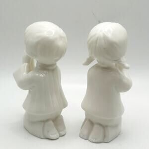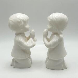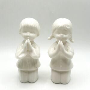 Beautiful vintage white bisque ceramic praying children holiday figurines by Schmid Bros Japan. Both are in great shape and sure to make great additions to anyone’s collection.