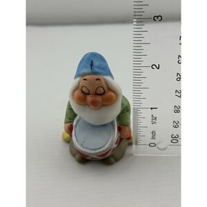 The product is a vintage Schmid ceramic Disney ornament featuring "Sleepy with Drums" Dwarf from the 1987 50th Anniversary Collection. This collectible item showcases the beloved Snow White and the Seven Dwarfs characters, with a focus on Sleepy and his iconic drums. Made of ceramic, it is a unique and nostalgic piece that would be a special addition to any Disney or collectibles collection. It measures 2.5" tall and 2" long and wide. It is in excellent condition, but does not have it's original box.