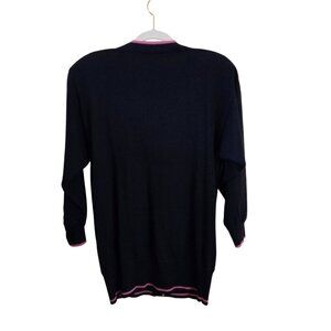 Vintage Schrader Navy Long Line V Neck Cardigan Sweater 3D Flower Unique Size M