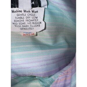 This delightful vintage shirt dress from Schrader Sport is a charming addition to any wardrobe. Crafted in the USA, it features a pastel stripe pattern that exudes a playful yet sophisticated aura. The dress is made from lightweight cotton, ensuring comfort and breathability. Perfect for warm weather outings.