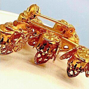 Vintage Schreiner? Ornate Faceted Amber Crystal Floral Gold 1960's Brooch