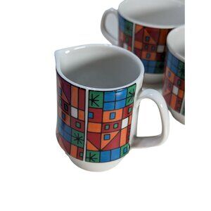 Vintage Schumann Arzberg Bavaria Germany Geometric Coffee Cups Creamer Mod 1970'