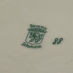 Lovely vintage ( circa 1920) Schumann teacup and saucer made in Bavaria Germany. The teacup is decorated with flowers, gold trim and handle and gold filigree pattern. The saucer has fluted edges. Pre-owned, good condition.