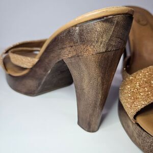 Vintage Schutz Native Wooden Platform '70s Vibe Glitter Cross Front Sandals 7