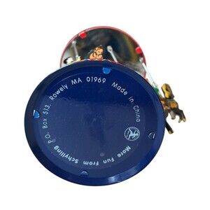 The Vintage Schylling Collector Series Horse Carousel is a reproduction tin toy made in China in 1999. Featuring a classic design and high-quality craftsmanship, this toy is perfect for collectors or anyone looking to add a touch of nostalgia to their toy collection. The pull and spin mechanism creates a fun and entertaining experience for both children and adults alike, making it a timeless piece that will be cherished for years to come.