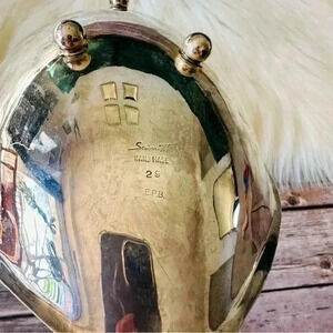 Beautiful piece! Has natural patina over silver. I believe it’s silver plated. Measurements included in pictures. Perfect piece for coffee table!