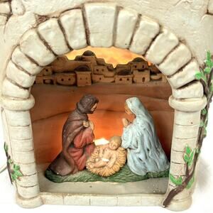 Vintage Scioto 1988 Lighted Christmas Nativity Diorama Painted Metal 9”