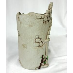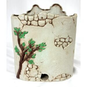 This is in very good condition. Made of metal, but has a ceramic look. The light and cord that come with it are not original to the piece and it does not clip into place, but still works fine.