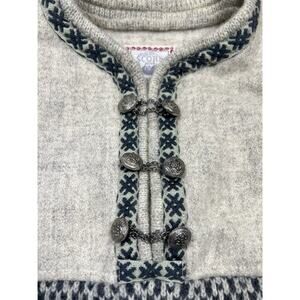 Authentic vintage Norwegian wool sweater by Scorre Scandinavia. Crafted in Norway with traditional Nordic patterns and classic pewter-style clasps. Thick, warm, and high quality—similar to Dale of Norway sweaters.