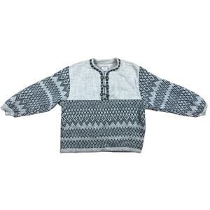 Vintage Score Norway Wool Sweateri Scandinavia Pullover Pewter Clasps Men M/L