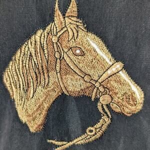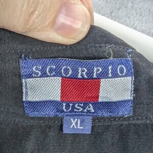 Vintage Scorpio USA Shirt. Men's Size XL or Extra Large. Black and White with Embroidered Horse heads on the front and one on the back. No stains or holes that I am aware of. The button holes need repaired as they are frayed but still functional.