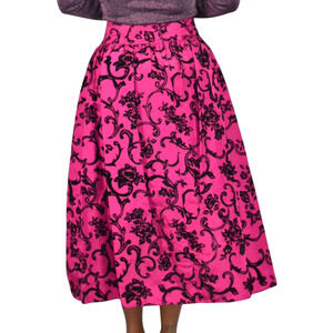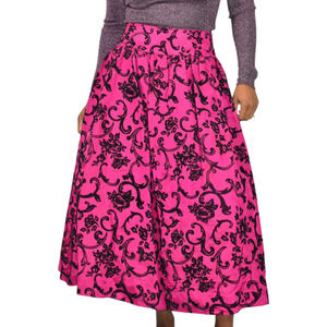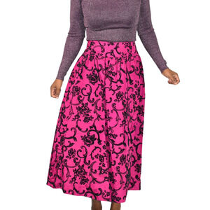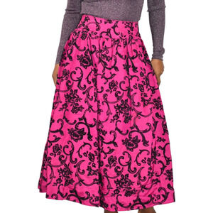 Vintage Scott McClintock long skirt FEATURES a baroque print with a mix of silky and velvet fabrics. Long maxi length. Wide waistband. Sits at natural waist. A-line full silhouette. Crinoline underskirt. Lined. Perfect for black tie wedding special occasion events.