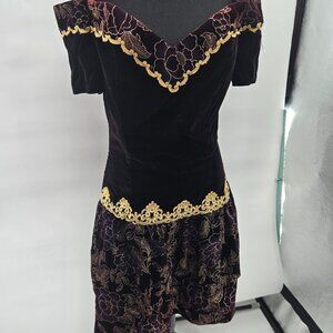 Scott McClintock Mini Velvet Dress Black with Burgundy and Purple Floral Off Shoulder