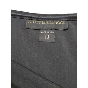 This Vintage Scott McClintock Velvet Maxi Skirt in black is a stunning piece for any woman's wardrobe. With a side zip closure and a mid-rise, this skirt exudes a fairy character with a touch of gothic and steampunk style, perfect for a party, formal event, or casual outing. Made from a blend of polyester and spandex, this lightweight and stretchy skirt is perfect for the winter, fall, and spring seasons. The long length and solid black color make it a versatile and stylish addition to any outfit, showcasing the unique vintage charm of Scott McClintock's brand.
