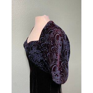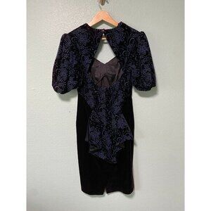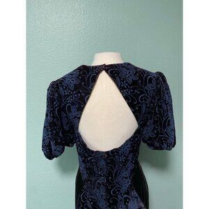 Vintage Scott McClintock Women's Blue and Purple Floral Velvet Open Back Dress