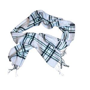 Vintage Scottish 100% Cashmere Pink Black Plaid Scarf with Fringe