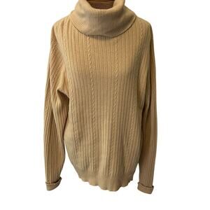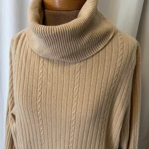 Vintage Scottish Cashmere camel beige turtleneck ribbed knit luxury pullover